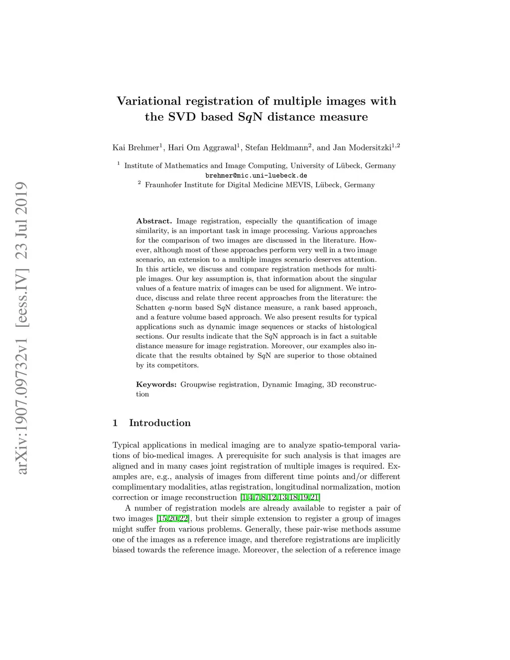 Image registration, especially the quantification of image similarity, is an important task in image processing. Various approaches for the comparison of two images are discussed in the literature. However, although most of these approaches perform very well in a two image scenario, an extension to a multiple images scenario deserves attention. In this article, we discuss and compare registration methods for multiple images. Our key assumption is, that information about the singular values of a feature matrix of images can be used for alignment. We introduce, discuss and relate three recent approaches from the literature: the Schatten q-norm based SqN distance measure, a rank based approach, and a feature volume based approach. We also present results for typical applications such as dynamic image sequences or stacks of histological sections. Our results indicate that the SqN approach is in fact a suitable distance measure for image registration. Moreover, our examples also indicate that the results obtained by SqN are superior to those obtained by its competitors.