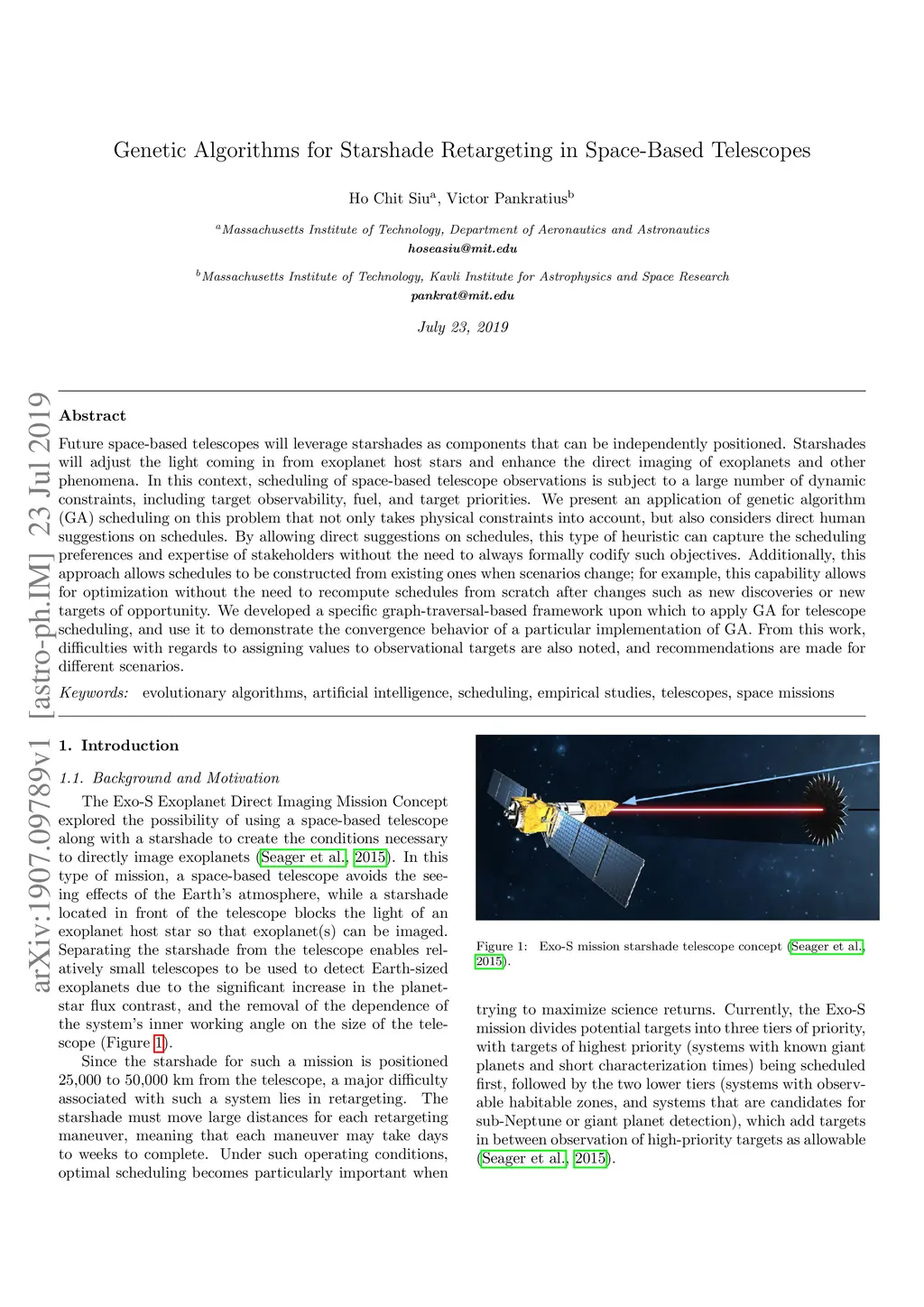 Future space-based telescopes will leverage starshades as components that can be independently positioned. Starshades will adjust the light coming in from exoplanet host stars and enhance the direct imaging of exoplanets and other phenomena. In this context, scheduling of space-based telescope observations is subject to a large number of dynamic constraints, including target observability, fuel, and target priorities. We present an application of genetic algorithm (GA) scheduling on this problem that not only takes physical constraints into account, but also considers direct human suggestions on schedules. By allowing direct suggestions on schedules, this type of heuristic can capture the scheduling preferences and expertise of stakeholders without the need to always formally codify such objectives. Additionally, this approach allows schedules to be constructed from existing ones when scenarios change; for example, this capability allows for optimization without the need to recompute schedules from scratch after changes such as new discoveries or new targets of opportunity. We developed a specific graph-traversal-based framework upon which to apply GA for telescope scheduling, and use it to demonstrate the convergence behavior of a particular implementation of GA. From this work, difficulties with regards to assigning values to observational targets are also noted, and recommendations are made for different scenarios.