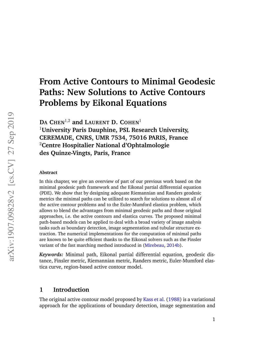 From Active Contours to Minimal Geodesic Paths: New Solutions to Active