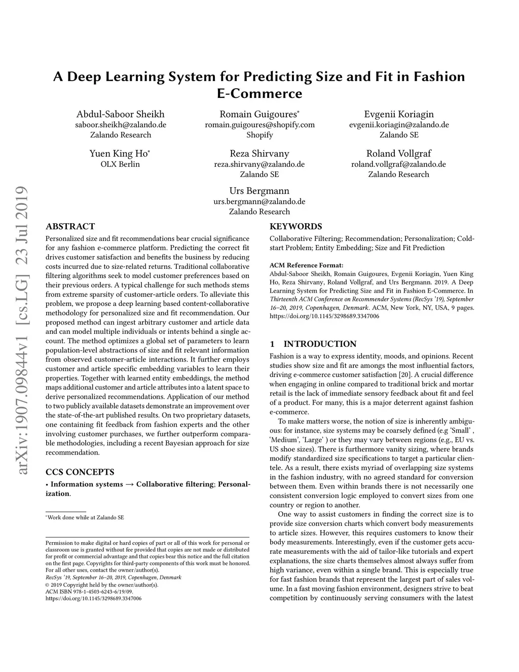 A Deep Learning System for Predicting Size and Fit in Fashion E-Commerce