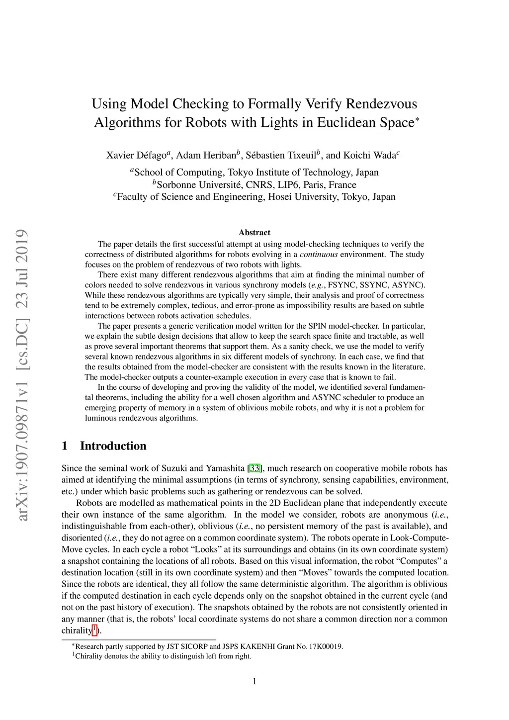 Using Model Checking to Formally Verify Rendezvous Algorithms for Robots