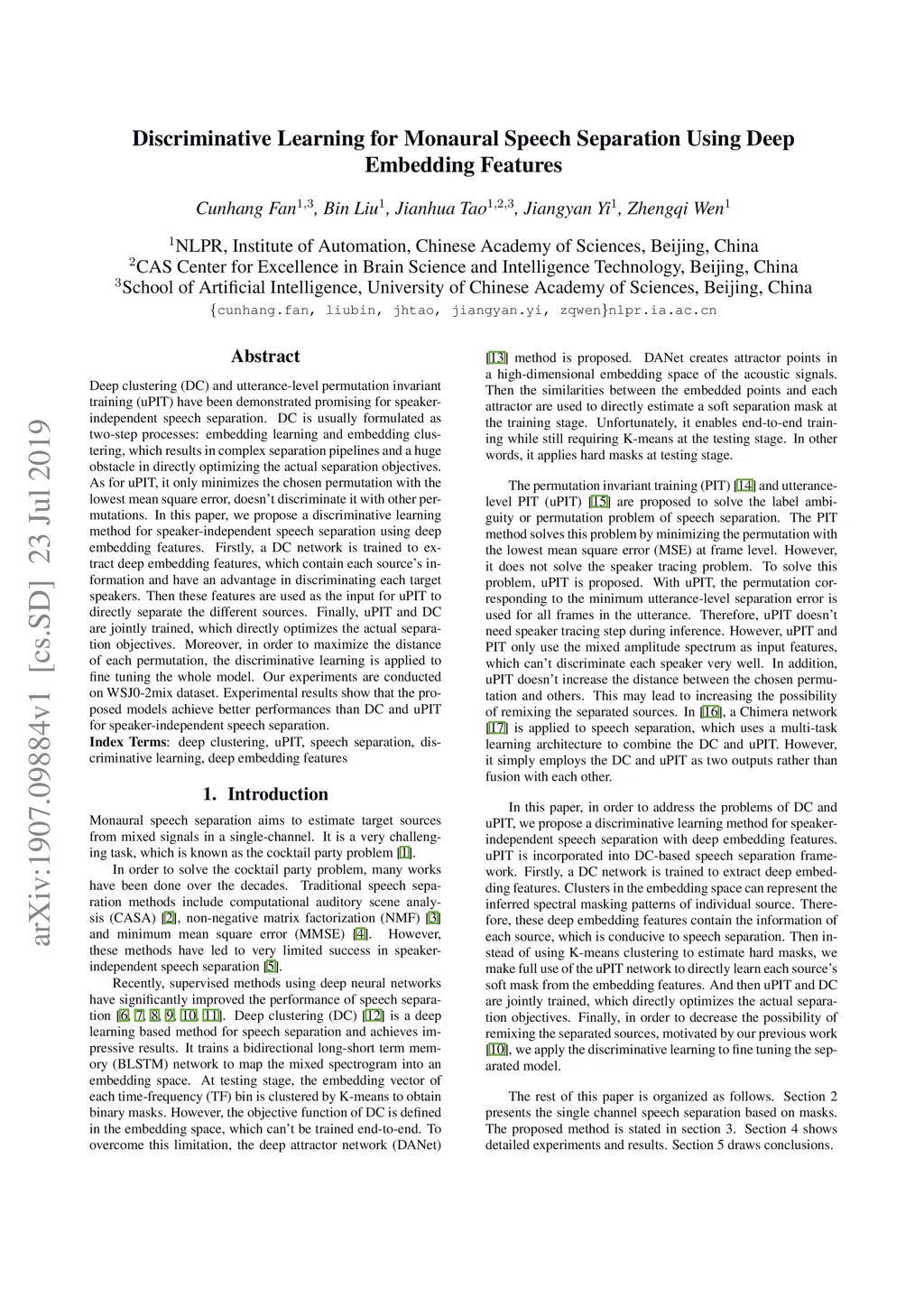 Discriminative Learning for Monaural Speech Separation Using Deep