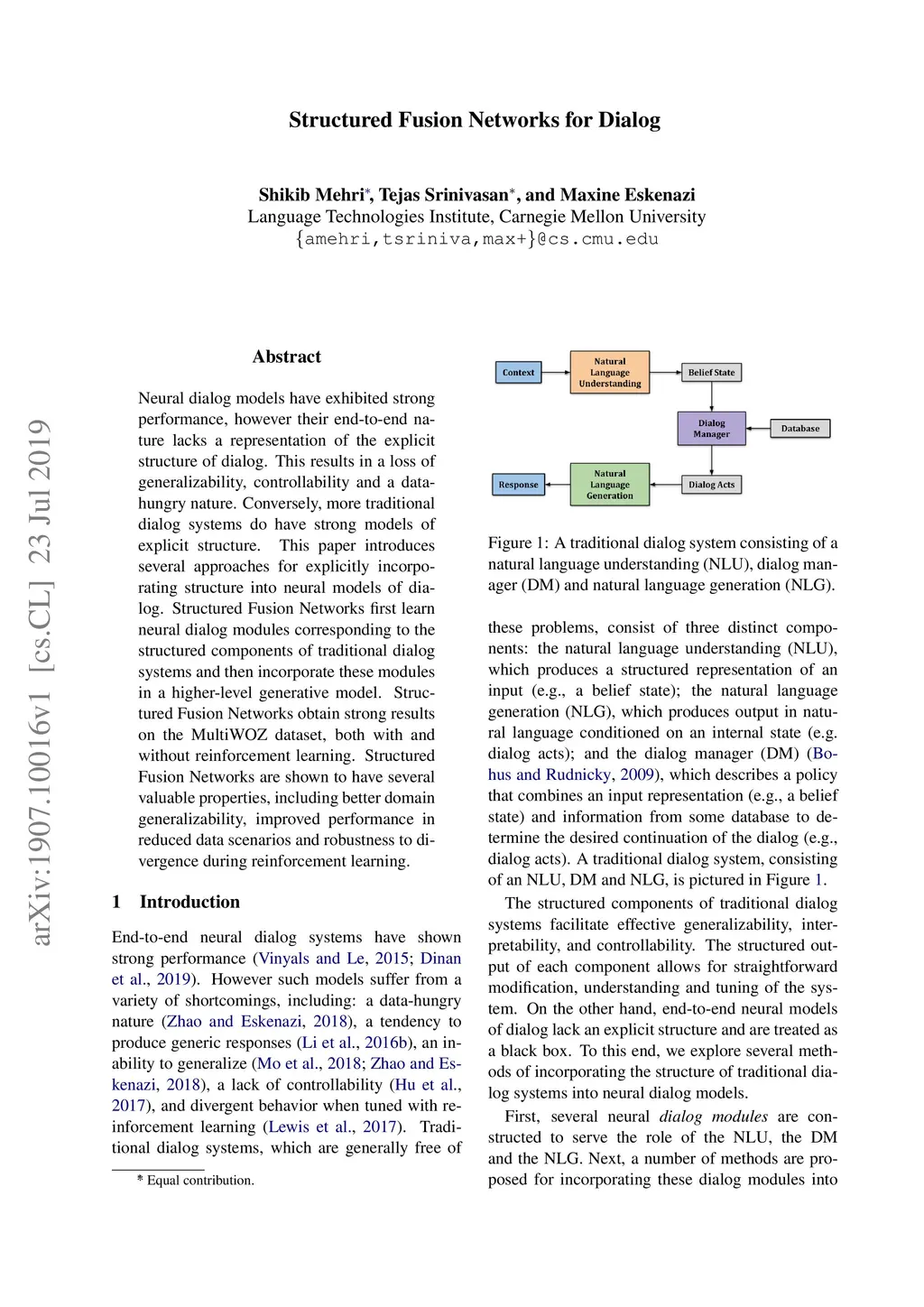 Neural dialog models have exhibited strong performance, however their end-to-end nature lacks a representation of the explicit structure of dialog. This results in a loss of generalizability, controllability and a data-hungry nature. Conversely, more traditional dialog systems do have strong models of explicit structure. This paper introduces several approaches for explicitly incorporating structure into neural models of dialog. Structured Fusion Networks first learn neural dialog modules corresponding to the structured components of traditional dialog systems and then incorporate these modules in a higher-level generative model. Structured Fusion Networks obtain strong results on the MultiWOZ dataset, both with and without reinforcement learning. Structured Fusion Networks are shown to have several valuable properties, including better domain generalizability, improved performance in reduced data scenarios and robustness to divergence during reinforcement learning.