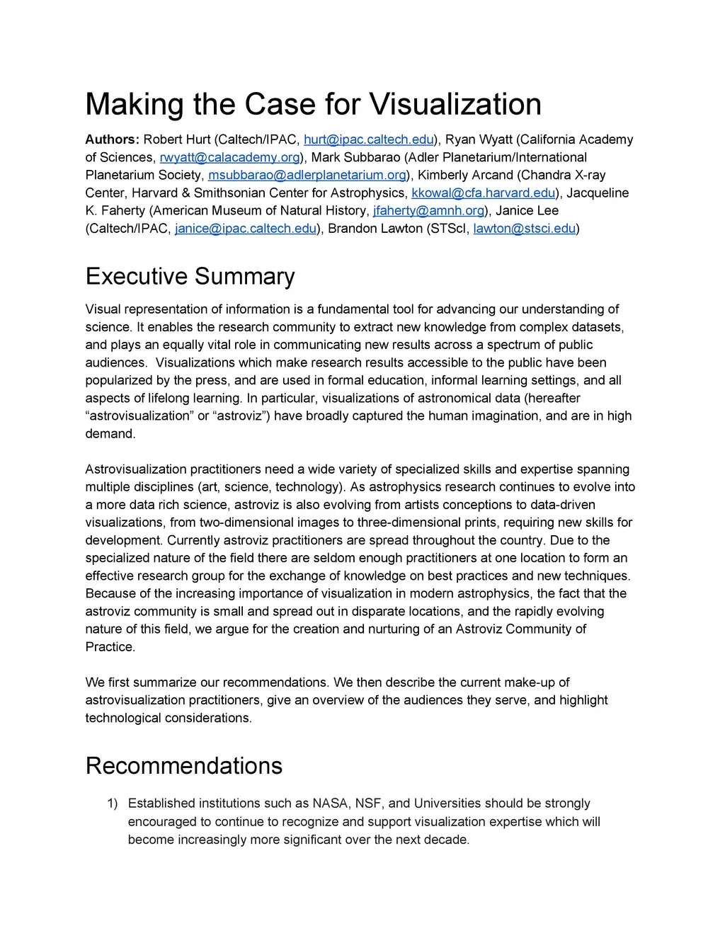 Making the Case for Visualization