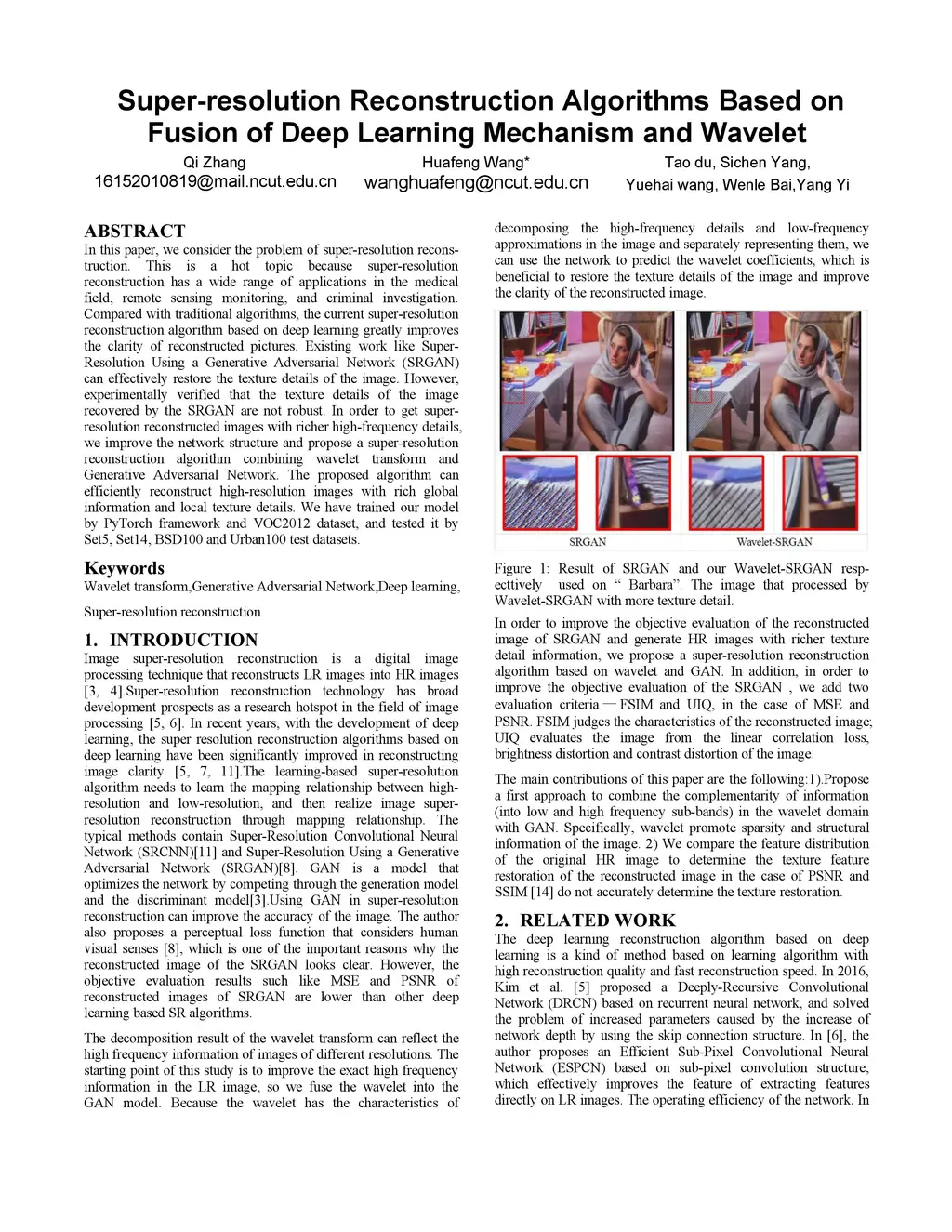 In this paper, we consider the problem of super-resolution recons-truction. This is a hot topic because super-resolution reconstruction has a wide range of applications in the medical field, remote sensing monitoring, and criminal investigation. Compared with traditional algorithms, the current super-resolution reconstruction algorithm based on deep learning greatly improves the clarity of reconstructed pictures. Existing work like Super-Resolution Using a Generative Adversarial Network (SRGAN) can effectively restore the texture details of the image. However, experimentally verified that the texture details of the image recovered by the SRGAN are not robust. In order to get super-resolution reconstructed images with richer high-frequency details, we improve the network structure and propose a super-resolution reconstruction algorithm combining wavelet transform and Generative Adversarial Network. The proposed algorithm can efficiently reconstruct high-resolution images with rich global information and local texture details. We have trained our model by PyTorch framework and VOC2012 dataset, and tested it by Set5, Set14, BSD100 and Urban100 test datasets.