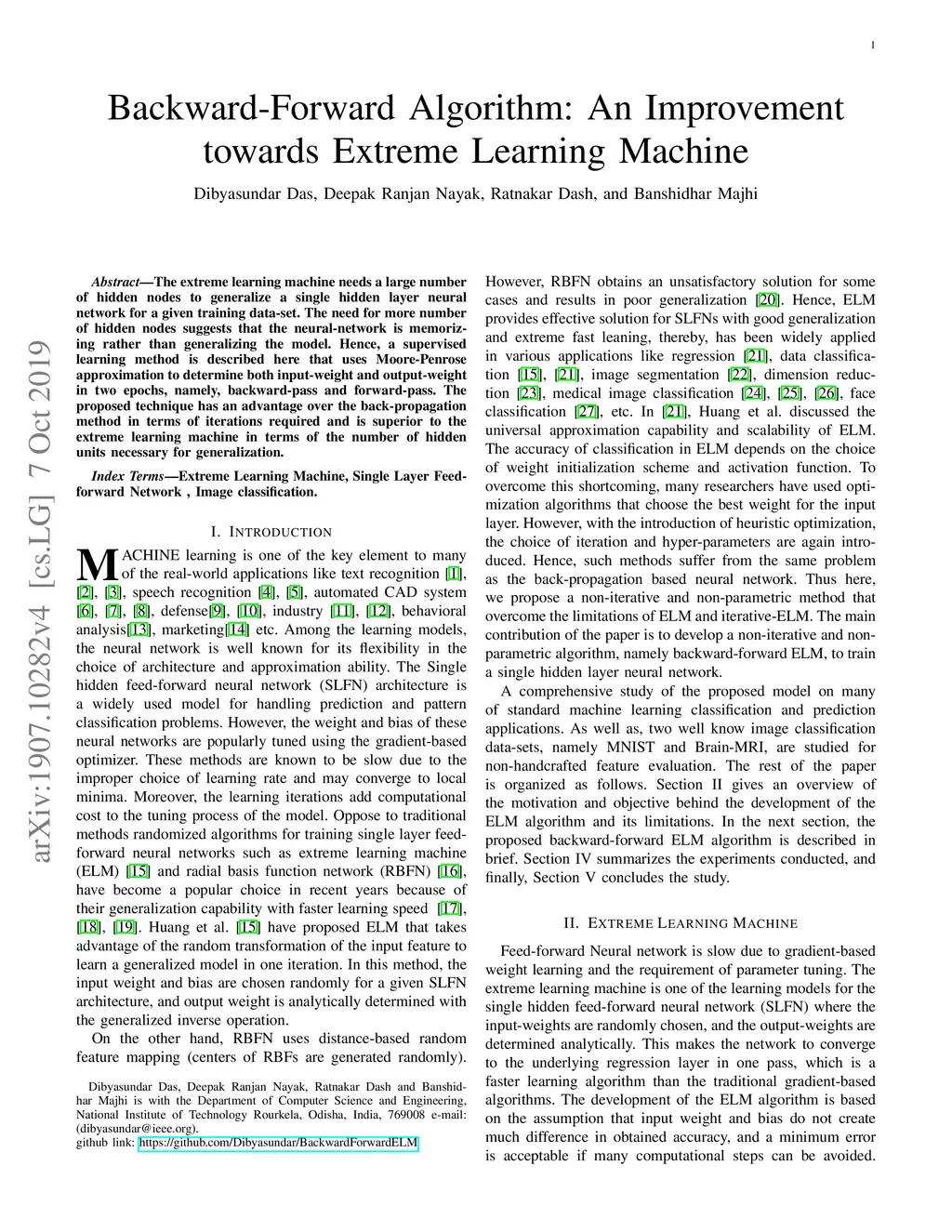 Backward-Forward Algorithm: An Improvement towards Extreme Learning