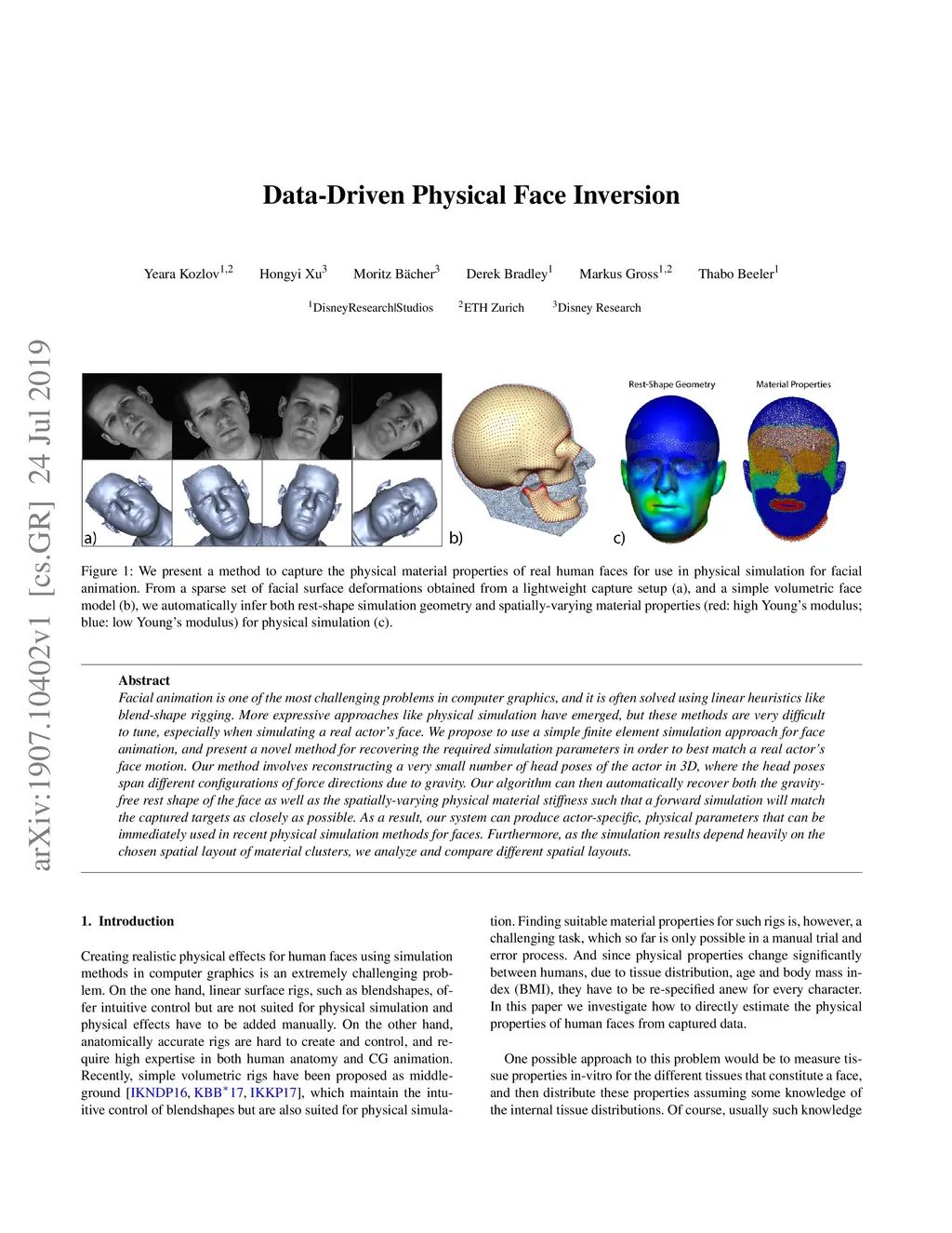 Facial animation is one of the most challenging problems in computer graphics, and it is often solved using linear heuristics like blend-shape rigging. More expressive approaches like physical simulation have emerged, but these methods are very difficult to tune, especially when simulating a real actor's face. We propose to use a simple finite element simulation approach for face animation, and present a novel method for recovering the required simulation parameters in order to best match a real actor's face motion. Our method involves reconstructing a very small number of head poses of the actor in 3D, where the head poses span different configurations of force directions due to gravity. Our algorithm can then automatically recover both the gravity-free rest shape of the face as well as the spatially-varying physical material stiffness such that a forward simulation will match the captured targets as closely as possible. As a result, our system can produce actor-specific, physical parameters that can be immediately used in recent physical simulation methods for faces. Furthermore, as the simulation results depend heavily on the chosen spatial layout of material clusters, we analyze and compare different spatial layouts.