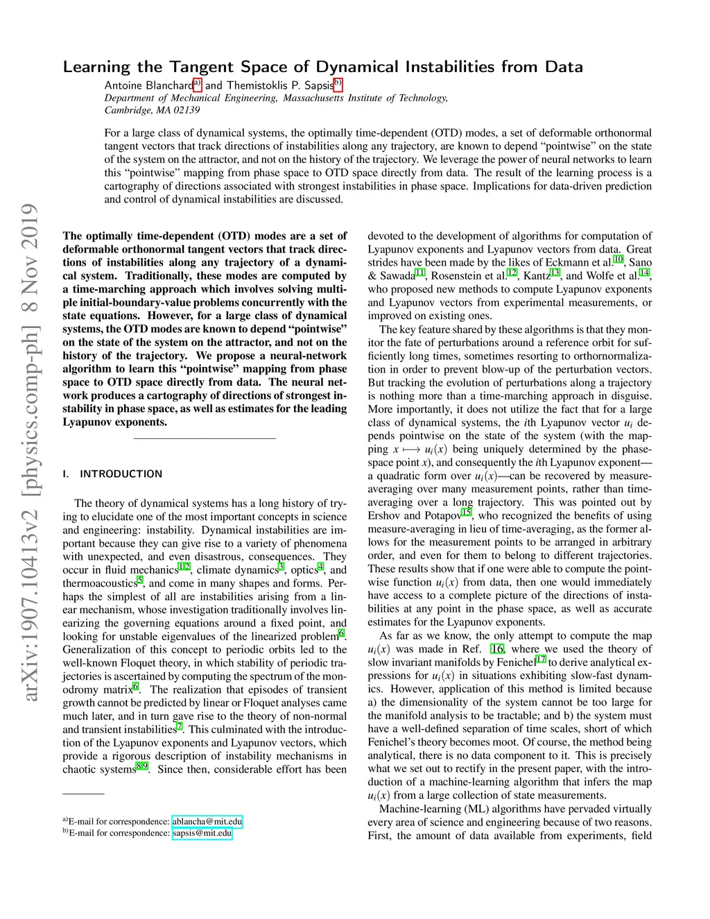 For a large class of dynamical systems, the optimally time-dependent (OTD) modes, a set of deformable orthonormal tangent vectors that track directions of instabilities along any trajectory, are known to depend "pointwise" on the state of the system on the attractor, and not on the history of the trajectory. We leverage the power of neural networks to learn this "pointwise" mapping from phase space to OTD space directly from data. The result of the learning process is a cartography of directions associated with strongest instabilities in phase space. Implications for data-driven prediction and control of dynamical instabilities are discussed.