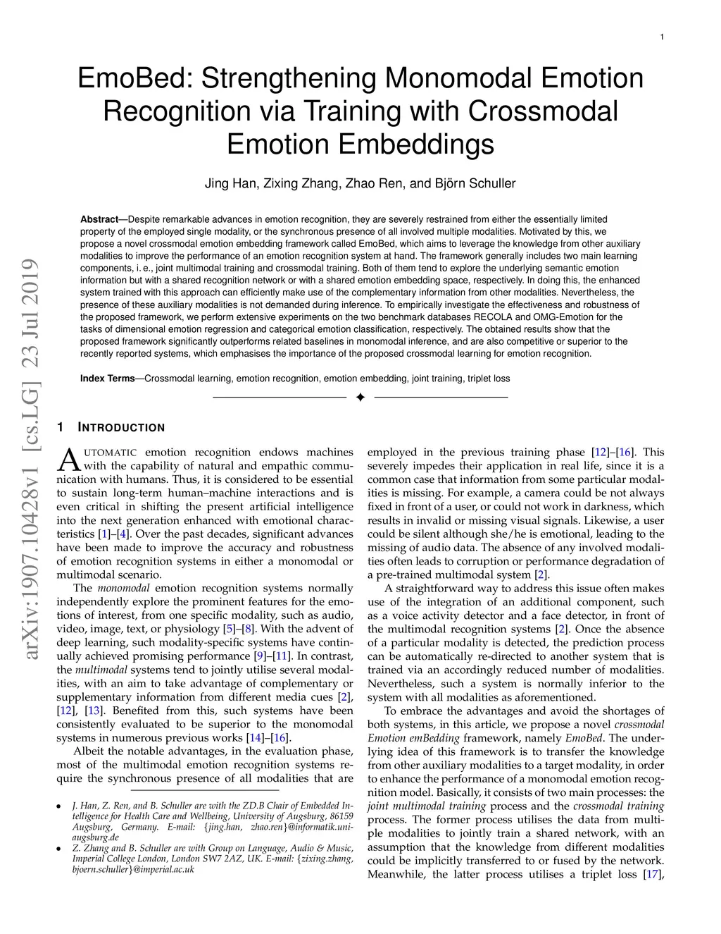 Crossmodal Emotion Embeddings