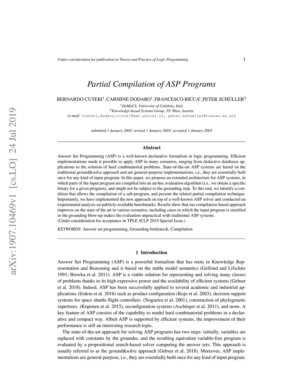 Answer Set Programming (ASP) is a well-known declarative formalism in logic programming. Efficient implementations made it possible to apply ASP in many scenarios, ranging from deductive databases applications to the solution of hard combinatorial problems. State-of-the-art ASP systems are based on the traditional ground\&solve approach and are general-purpose implementations, i.e., they are essentially built once for any kind of input program. In this paper, we propose an extended architecture for ASP systems, in which parts of the input program are compiled into an ad-hoc evaluation algorithm (i.e., we obtain a specific binary for a given program), and might not be subject to the grounding step. To this end, we identify a condition that allows the compilation of a sub-program, and present the related partial compilation technique. Importantly, we have implemented the new approach on top of a well-known ASP solver and conducted an experimental analysis on publicly-available benchmarks. Results show that our compilation-based approach improves on the state of the art in various scenarios, including cases in which the input program is stratified or the grounding blow-up makes the evaluation unpractical with traditional ASP systems.