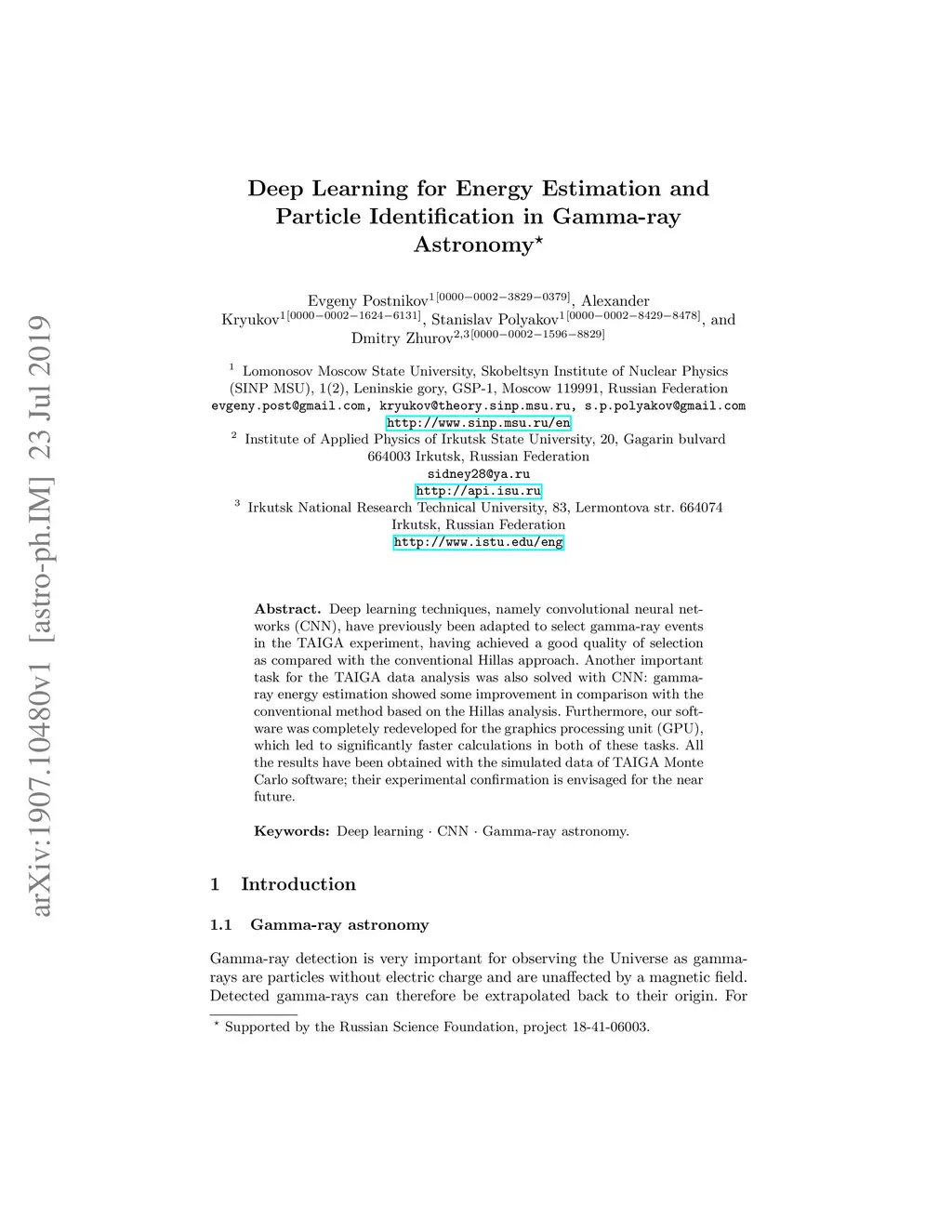 Deep Learning for Energy Estimation and Particle Identification in