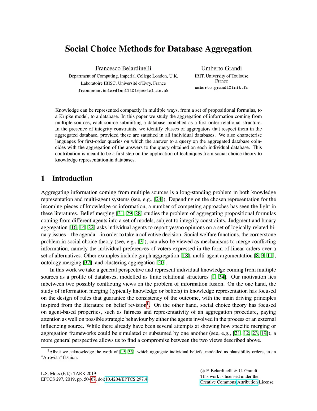 Social Choice Methods for Database Aggregation