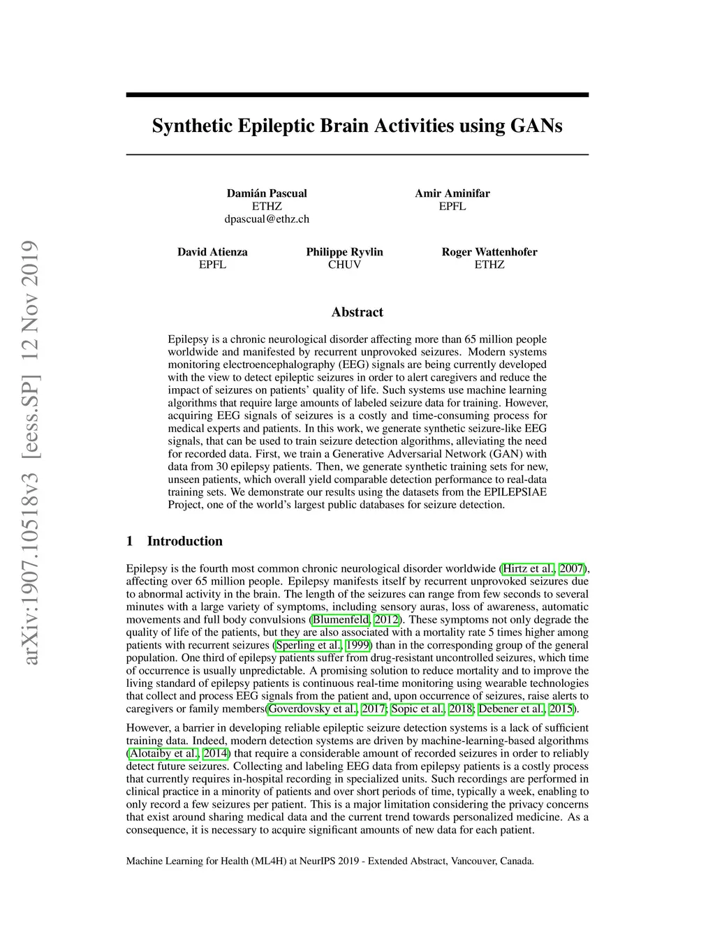 Synthetic Epileptic Brain Activities Using Generative Adversarial
