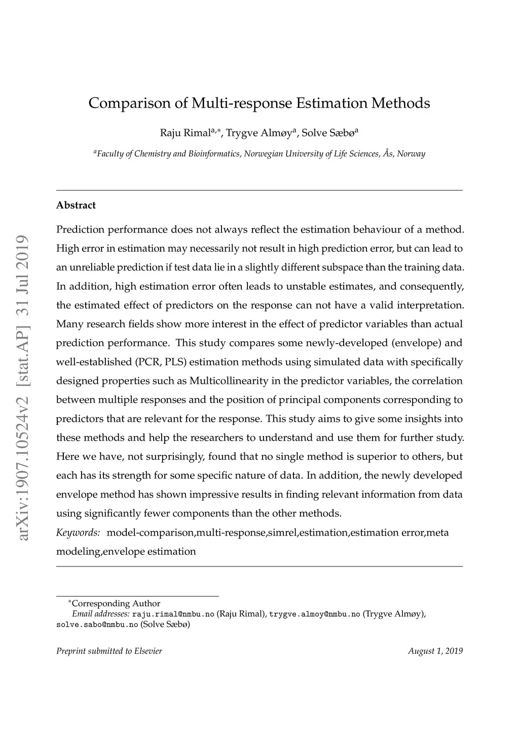 Prediction performance does not always reflect the estimation behaviour of a method. High error in estimation may necessarily not result in high prediction error, but can lead to an unreliable prediction if test data lie in a slightly different subspace than the training data. In addition, high estimation error often leads to unstable estimates, and consequently, the estimated effect of predictors on the response can not have a valid interpretation. Many research fields show more interest in the effect of predictor variables than actual prediction performance. This study compares some newly-developed (envelope) and well-established (PCR, PLS) estimation methods using simulated data with specifically designed properties such as Multicollinearity in the predictor variables, the correlation between multiple responses and the position of principal components corresponding to predictors that are relevant for the response. This study aims to give some insights into these methods and help the researchers to understand and use them for further study. Here we have, not surprisingly, found that no single method is superior to others, but each has its strength for some specific nature of data. In addition, the newly developed envelope method has shown impressive results in finding relevant information from data using significantly fewer components than the other methods.