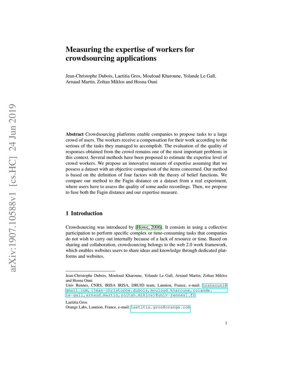 Measuring the Expertise of Workers for Crowdsourcing Applications