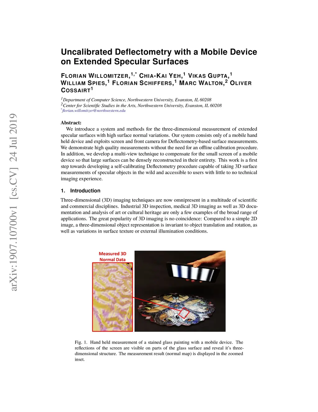 We introduce a system and methods for the three-dimensional measurement of extended specular surfaces with high surface normal variations. Our system consists only of a mobile hand held device and exploits screen and front camera for Deflectometry-based surface measurements. We demonstrate high quality measurements without the need for an offline calibration procedure. In addition, we develop a multi-view technique to compensate for the small screen of a mobile device so that large surfaces can be densely reconstructed in their entirety. This work is a first step towards developing a self-calibrating Deflectometry procedure capable of taking 3D surface measurements of specular objects in the wild and accessible to users with little to no technical imaging experience.