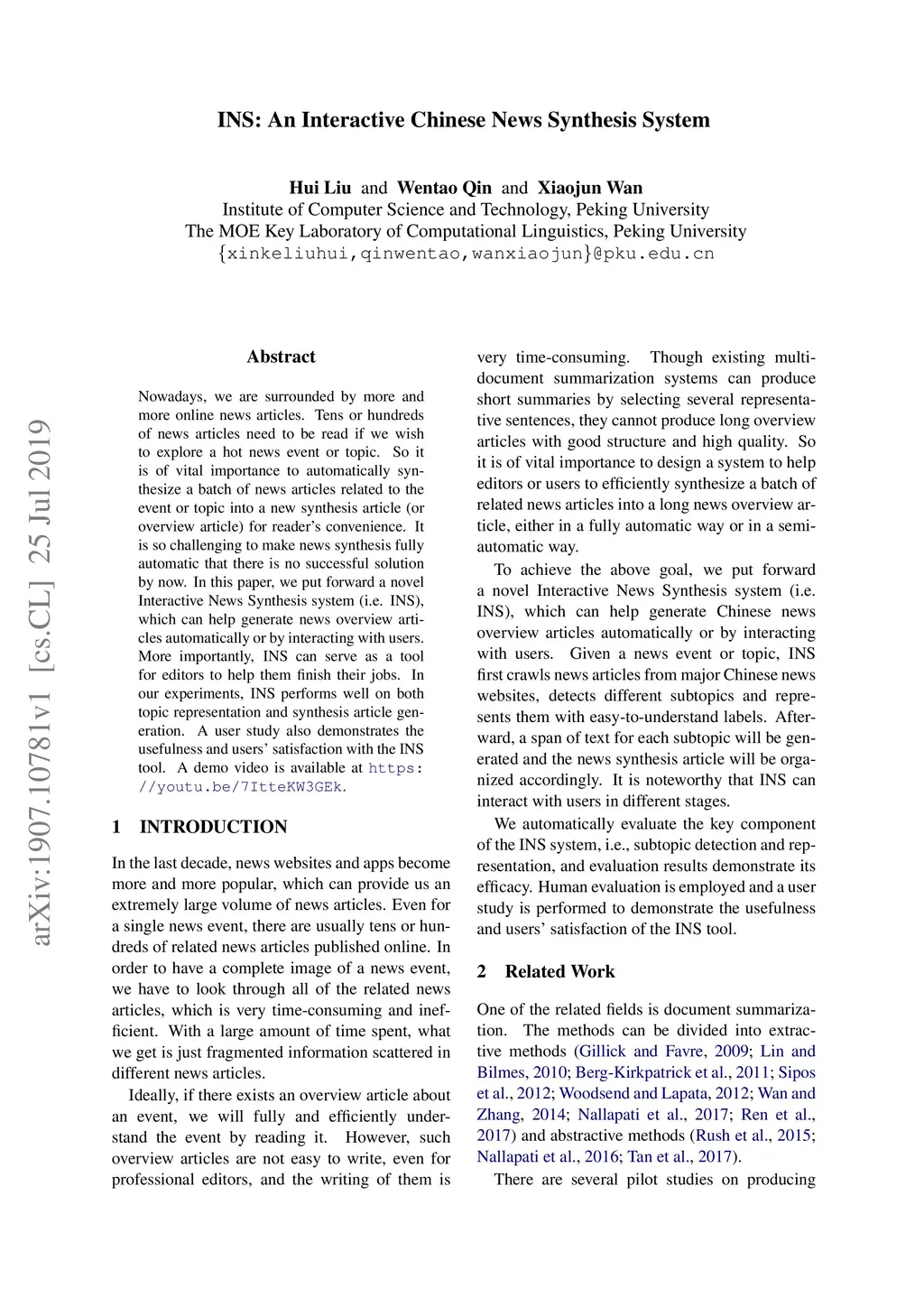 INS: An Interactive Chinese News Synthesis System
