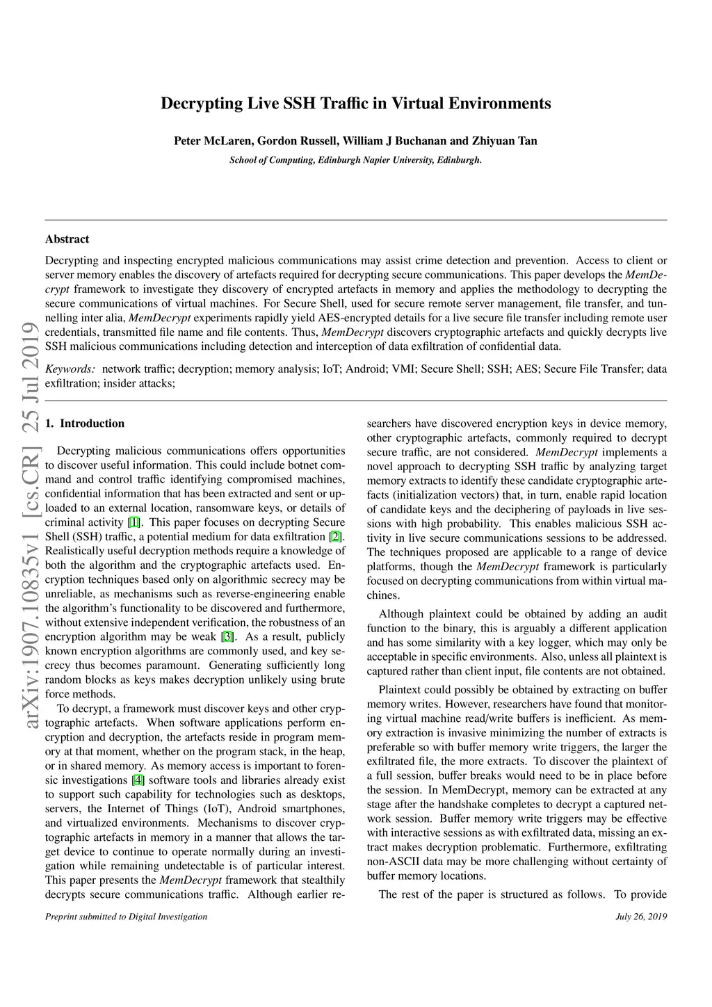 Decrypting live SSH traffic in virtual environments
