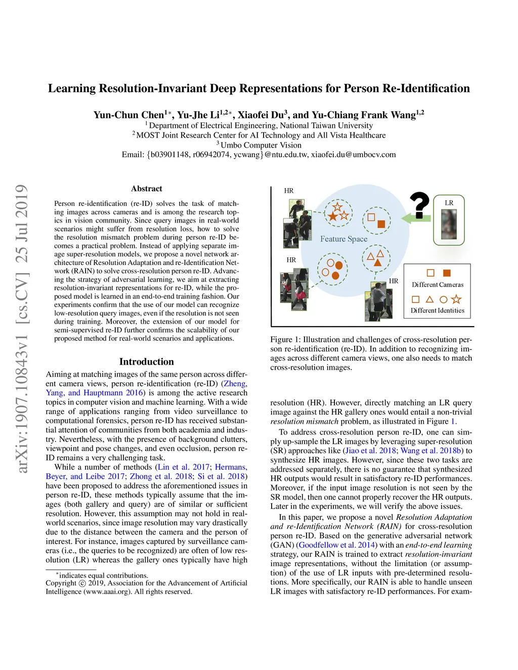 Person re-identification (re-ID) solves the task of matching images across cameras and is among the research topics in vision community. Since query images in real-world scenarios might suffer from resolution loss, how to solve the resolution mismatch problem during person re-ID becomes a practical problem. Instead of applying separate image super-resolution models, we propose a novel network architecture of Resolution Adaptation and re-Identification Network (RAIN) to solve cross-resolution person re-ID. Advancing the strategy of adversarial learning, we aim at extracting resolution-invariant representations for re-ID, while the proposed model is learned in an end-to-end training fashion. Our experiments confirm that the use of our model can recognize low-resolution query images, even if the resolution is not seen during training. Moreover, the extension of our model for semi-supervised re-ID further confirms the scalability of our proposed method for real-world scenarios and applications.