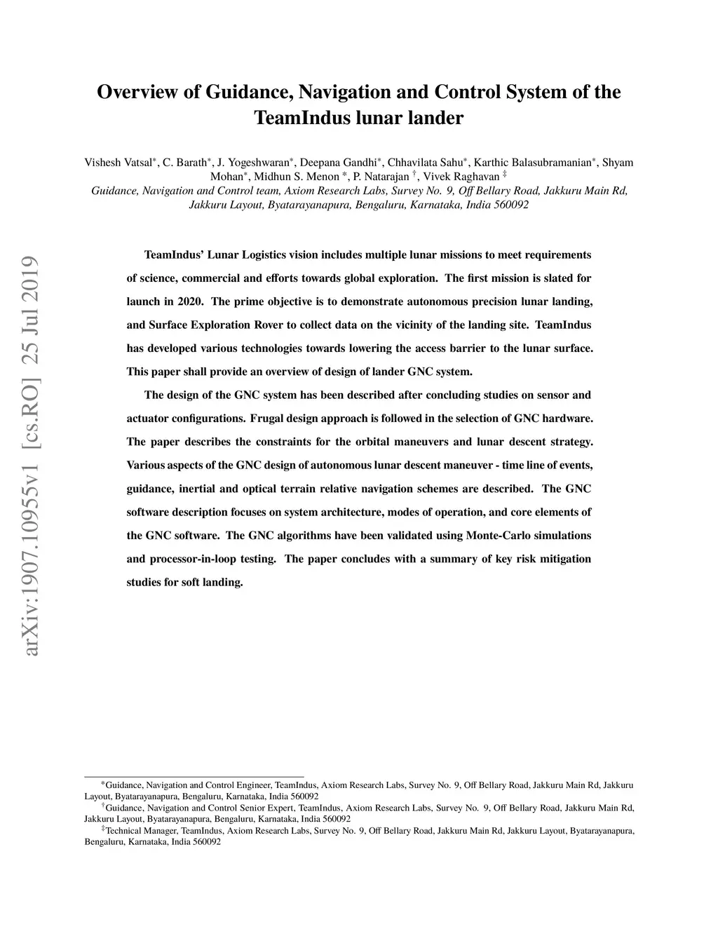 Overview of Guidance, Navigation and Control System of the TeamIndus