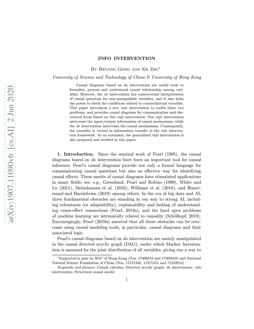 Causal diagrams based on do intervention are useful tools to formalize, process and understand causal relationship among variables. However, the do intervention has controversial interpretation of causal questions for non-manipulable variables, and it also lacks the power to check the conditions related to counterfactual variables. This paper introduces a new info intervention to tackle these two problems, and provides causal diagrams for communication and theoretical focus based on this info intervention. Our info intervention intervenes the input/output information of causal mechanisms, while the do intervention intervenes the causal mechanisms. Consequently, the causality is viewed as information transfer in the info intervention framework. As an extension, the generalized info intervention is also proposed and studied in this paper.