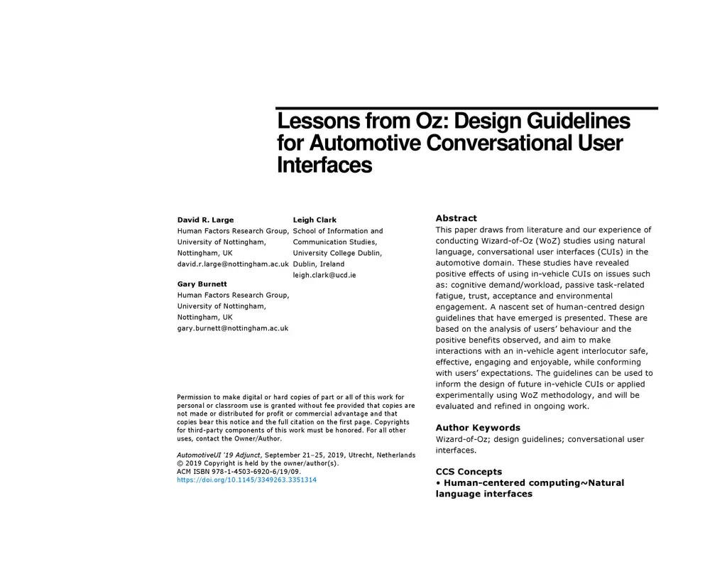Lessons from Oz: Design Guidelines for Automotive Conversational User