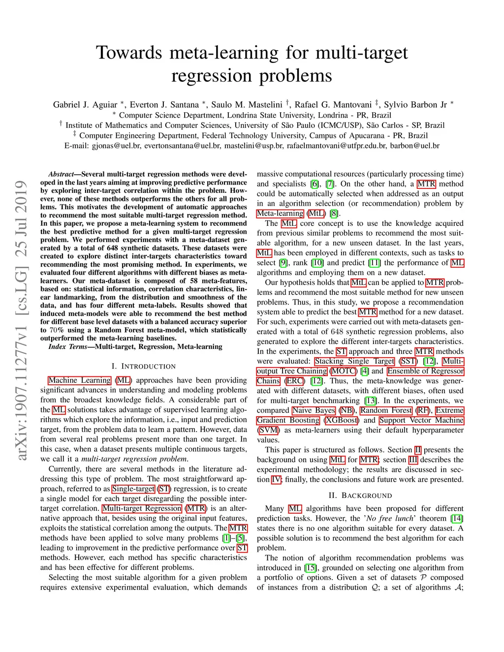 Several multi-target regression methods were devel-oped in the last years aiming at improving predictive performanceby exploring inter-target correlation within the problem. However, none of these methods outperforms the others for all problems. This motivates the development of automatic approachesto recommend the most suitable multi-target regression method. In this paper, we propose a meta-learning system to recommend the best predictive method for a given multi-target regression problem. We performed experiments with a meta-dataset generated by a total of 648 synthetic datasets. These datasets were created to explore distinct inter-targets characteristics toward recommending the most promising method. In experiments, we evaluated four different algorithms with different biases as meta-learners. Our meta-dataset is composed of 58 meta-features, based on: statistical information, correlation characteristics, linear landmarking, from the distribution and smoothness of the data, and has four different meta-labels. Results showed that induced meta-models were able to recommend the best methodfor different base level datasets with a balanced accuracy superior to 70% using a Random Forest meta-model, which statistically outperformed the meta-learning baselines.