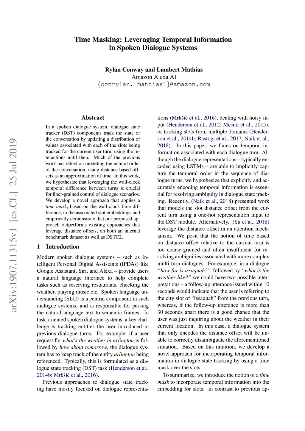 Time Masking: Leveraging Temporal Information in Spoken Dialogue Systems