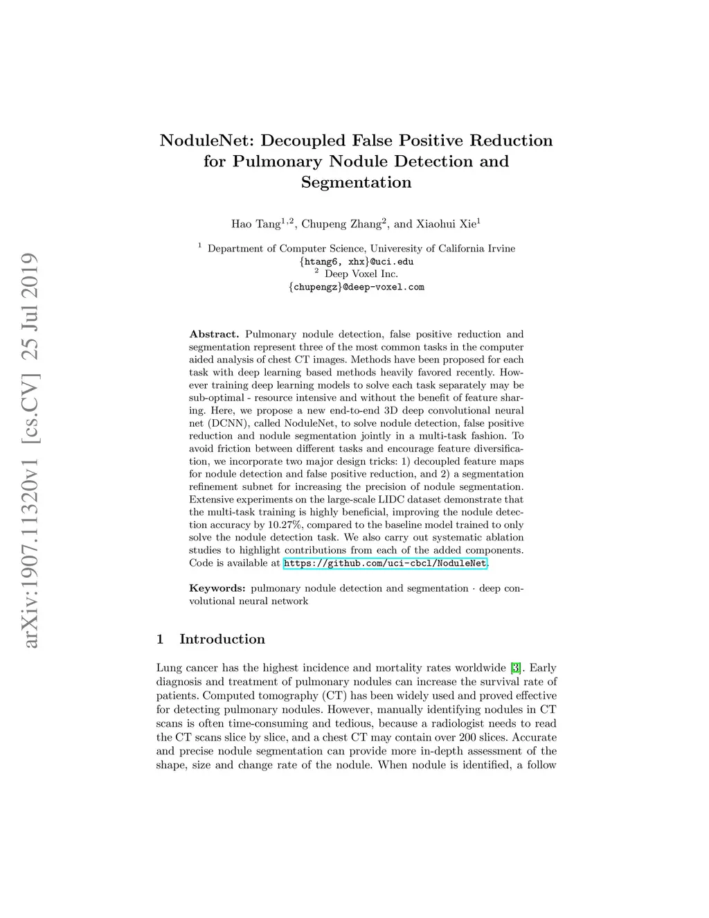 NoduleNet: Decoupled False Positive Reductionfor Pulmonary Nodule