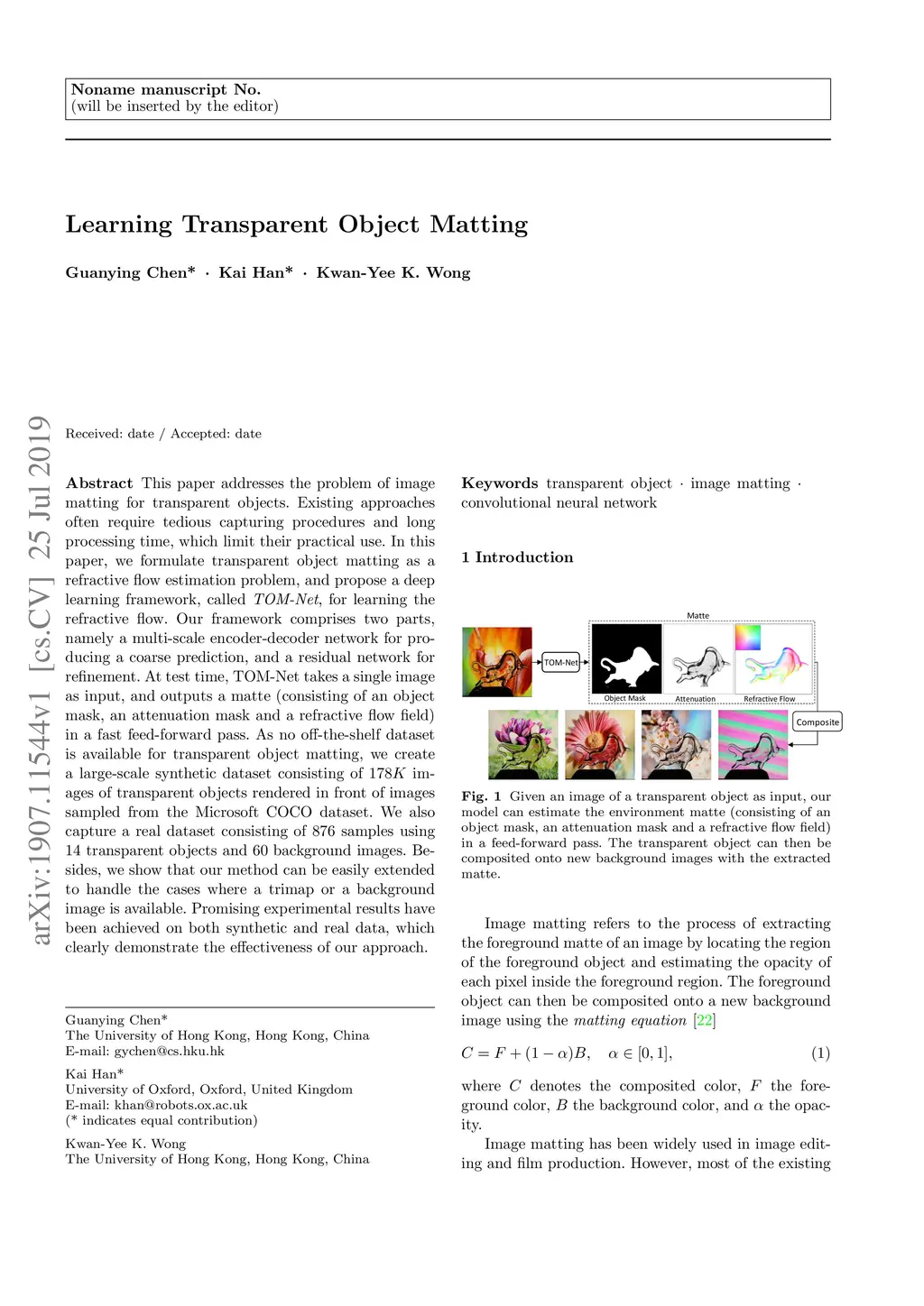 Learning Transparent Object Matting