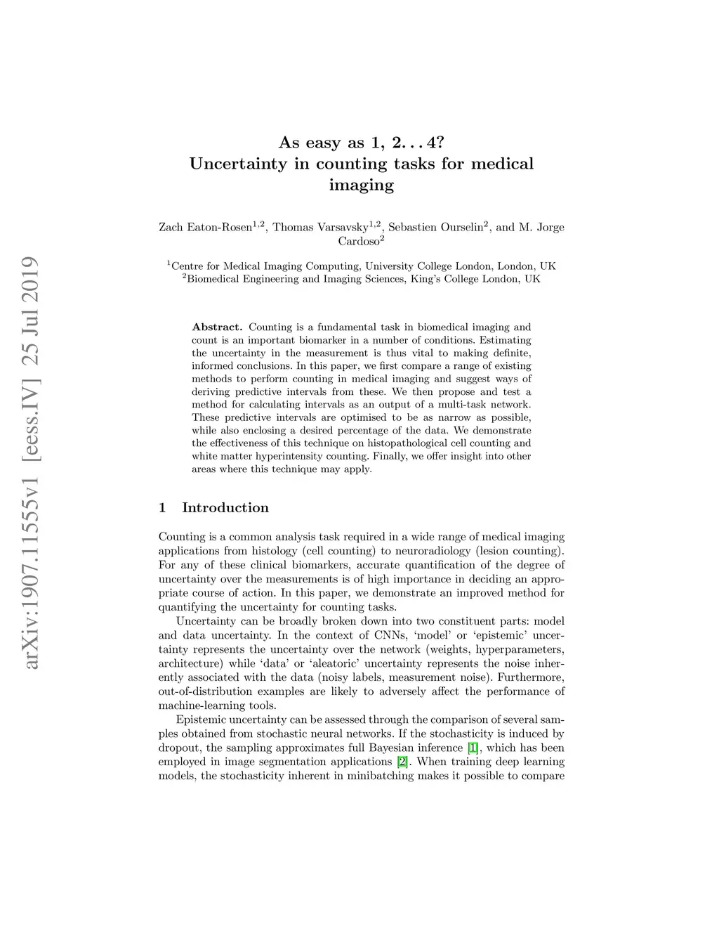 As easy as 1, 2... 4? Uncertainty in counting tasks for medical imaging