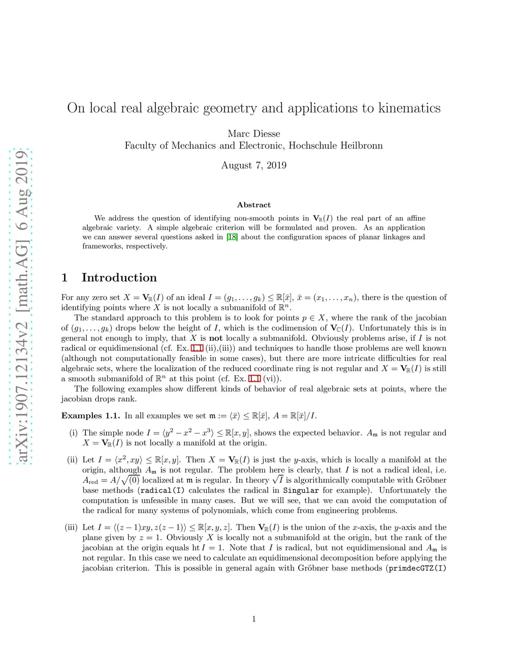 On local real algebraic geometry and applications to kinematics
