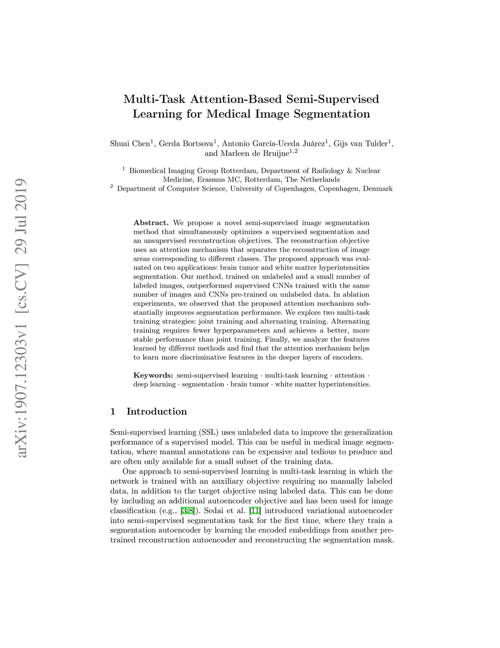 Multi-Task Attention-Based Semi-Supervised Learning for Medical Image
