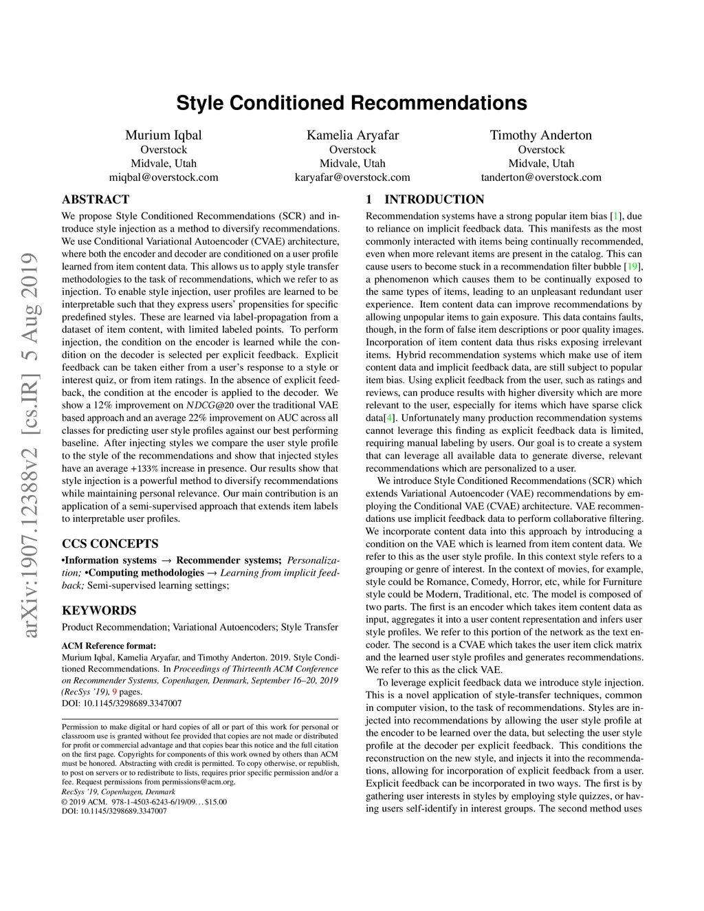 Style Conditioned Recommendations