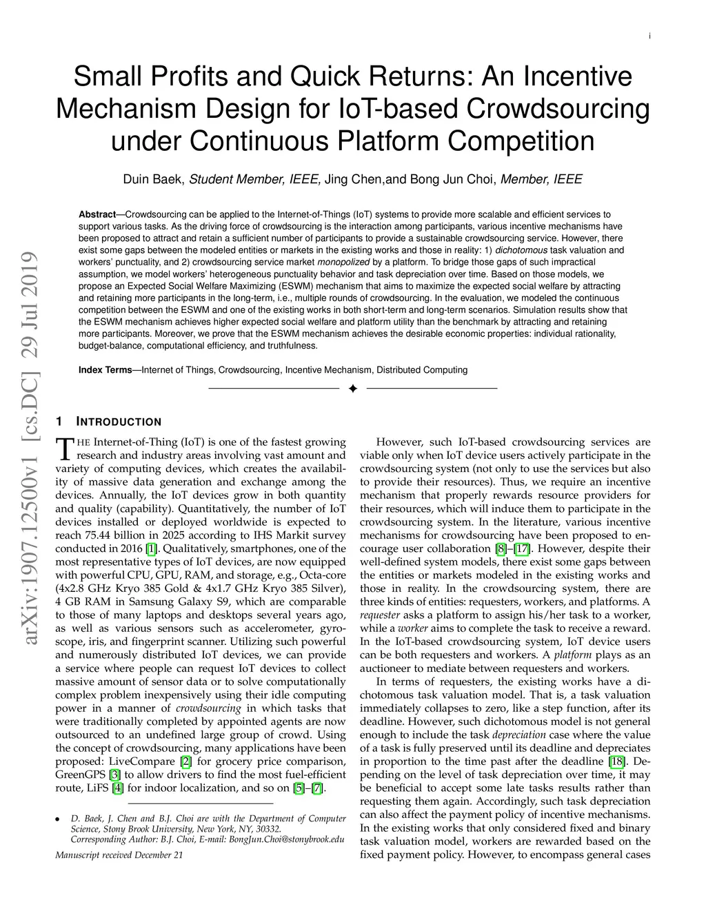 Crowdsourcing can be applied to the Internet-of-Things (IoT) systems to provide more scalable and efficient services to support various tasks. As the driving force of crowdsourcing is the interaction among participants, various incentive mechanisms have been proposed to attract and retain a sufficient number of participants to provide a sustainable crowdsourcing service. However, there exist some gaps between the modeled entities or markets in the existing works and those in reality: 1) \textit{dichotomous} task valuation and workers' punctuality, and 2) crowdsourcing service market \textit{monopolized} by a platform. To bridge those gaps of such impractical assumption, we model workers' heterogeneous punctuality behavior and task depreciation over time. Based on those models, we propose an Expected Social Welfare Maximizing (ESWM) mechanism that aims to maximize the expected social welfare by attracting and retaining more participants in the long-term, i.e., multiple rounds of crowdsourcing. In the evaluation, we modeled the continuous competition between the ESWM and one of the existing works in both short-term and long-term scenarios. Simulation results show that the ESWM mechanism achieves higher expected social welfare and platform utility than the benchmark by attracting and retaining more participants. Moreover, we prove that the ESWM mechanism achieves the desirable economic properties: individual rationality, budget-balance, computational efficiency, and truthfulness.