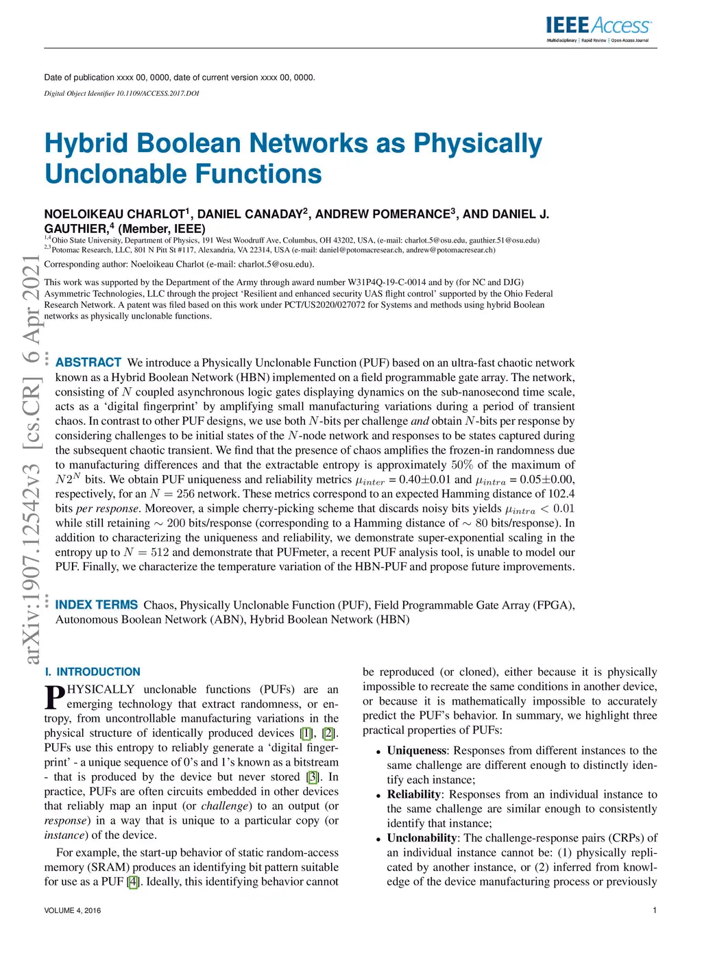 Hybrid Boolean Networks as Physically Unclonable Functions