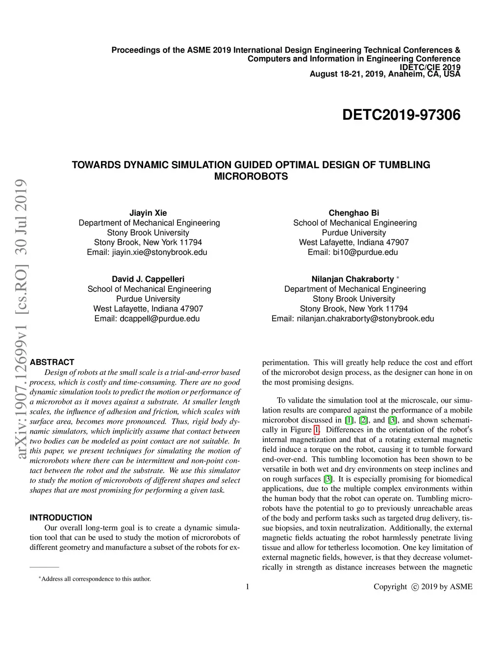 Design of robots at the small scale is a trial-and-error based process, which is costly and time-consuming. There are no good dynamic simulation tools to predict the motion or performance of a microrobot as it moves against a substrate. At smaller length scales, the influence of adhesion and friction, which scales with surface area, becomes more pronounced. Thus, rigid body dynamic simulators, which implicitly assume that contact between two bodies can be modeled as point contact are not suitable. In this paper, we present techniques for simulating the motion of microrobots where there can be intermittent and non-point contact between the robot and the substrate. We use this simulator to study the motion of microrobots of different shapes and select shapes that are most promising for performing a given task.