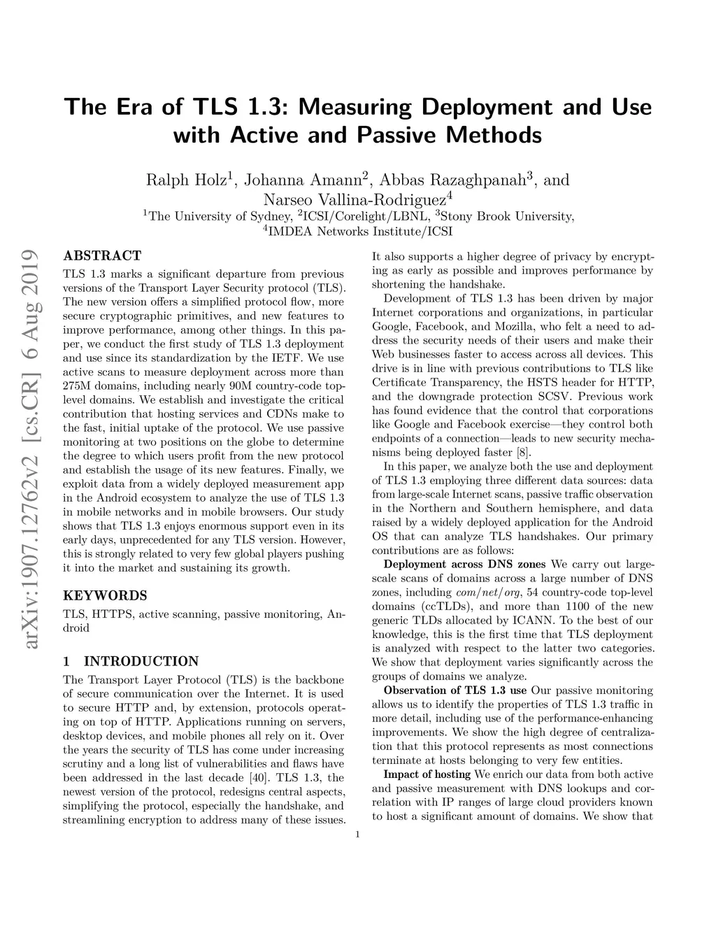 The Era of TLS 1.3: Measuring Deployment and Use with Active and Passive