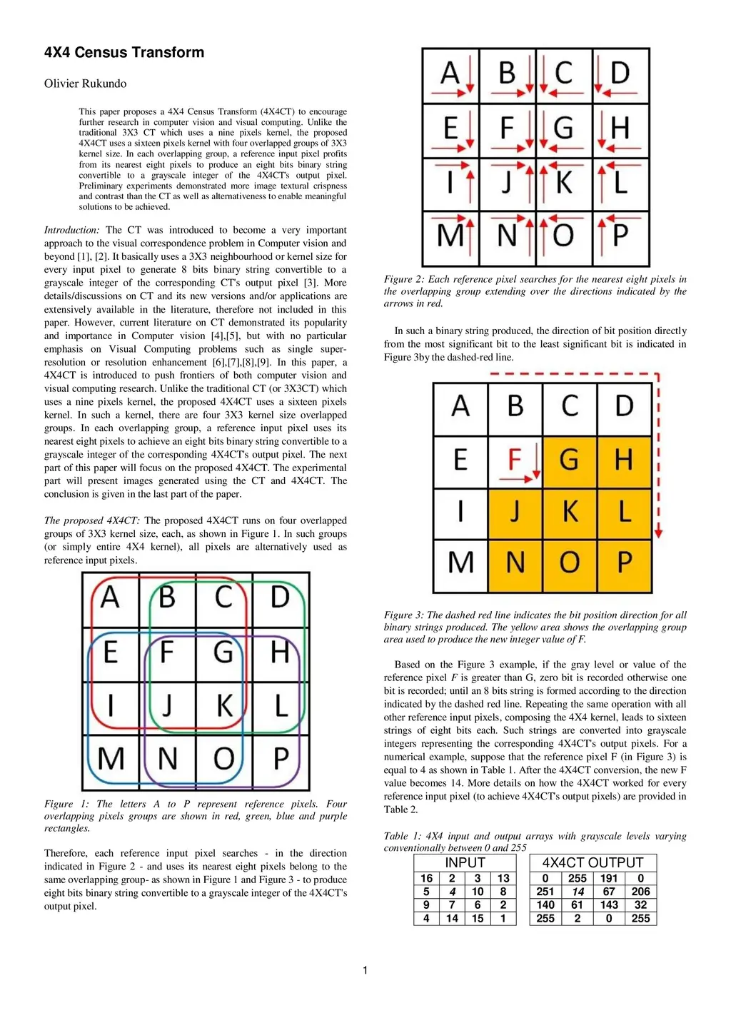 This paper proposes a 4X4 Census Transform (4X4CT) to encourage further research in computer vision and visual computing. Unlike the traditional 3X3 CT which uses a nine pixels kernel, the proposed 4X4CT uses a sixteen pixels kernel with four overlapped groups of 3X3 kernel size. In each overlapping group, a reference input pixel profits from its nearest eight pixels to produce an eight bits binary string convertible to a grayscale integer of the 4X4CT's output pixel. Preliminary experiments demonstrated more image textural crispness and contrast than the CT as well as alternativeness to enable meaningful solutions to be achieved.