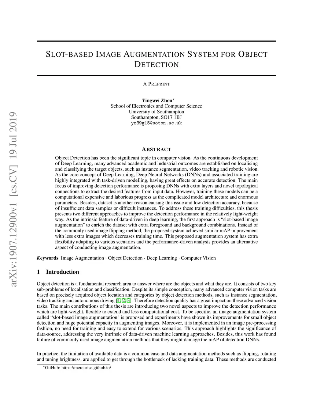 Object Detection has been a significant topic in computer vision. As the continuous development of Deep Learning, many advanced academic and industrial outcomes are established on localising and classifying the target objects, such as instance segmentation, video tracking and robotic vision. As the core concept of Deep Learning, Deep Neural Networks (DNNs) and associated training are highly integrated with task-driven modelling, having great effects on accurate detection. The main focus of improving detection performance is proposing DNNs with extra layers and novel topological connections to extract the desired features from input data. However, training these models can be computationally expensive and laborious progress as the complicated model architecture and enormous parameters. Besides, the dataset is another reason causing this issue and low detection accuracy, because of insufficient data samples or difficult instances. To address these training difficulties, this thesis presents two different approaches to improve the detection performance in the relatively light-weight way. As the intrinsic feature of data-driven in deep learning, the first approach is "slot-based image augmentation" to enrich the dataset with extra foreground and background combinations. Instead of the commonly used image flipping method, the proposed system achieved similar mAP improvement with less extra images which decrease training time. This proposed augmentation system has extra flexibility adapting to various scenarios and the performance-driven analysis provides an alternative aspect of conducting image augmentation