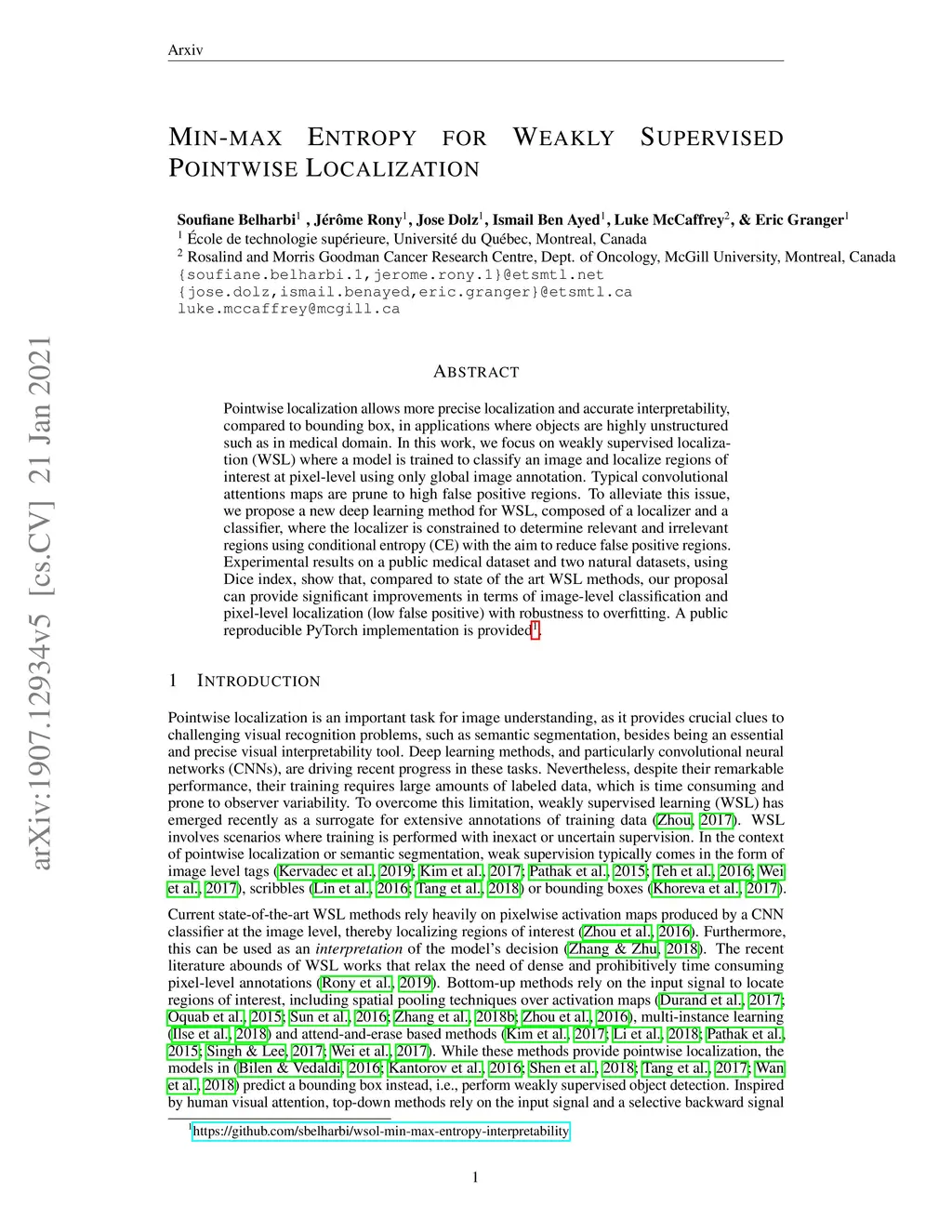 Min-max Entropy for Weakly Supervised Pointwise Localization
