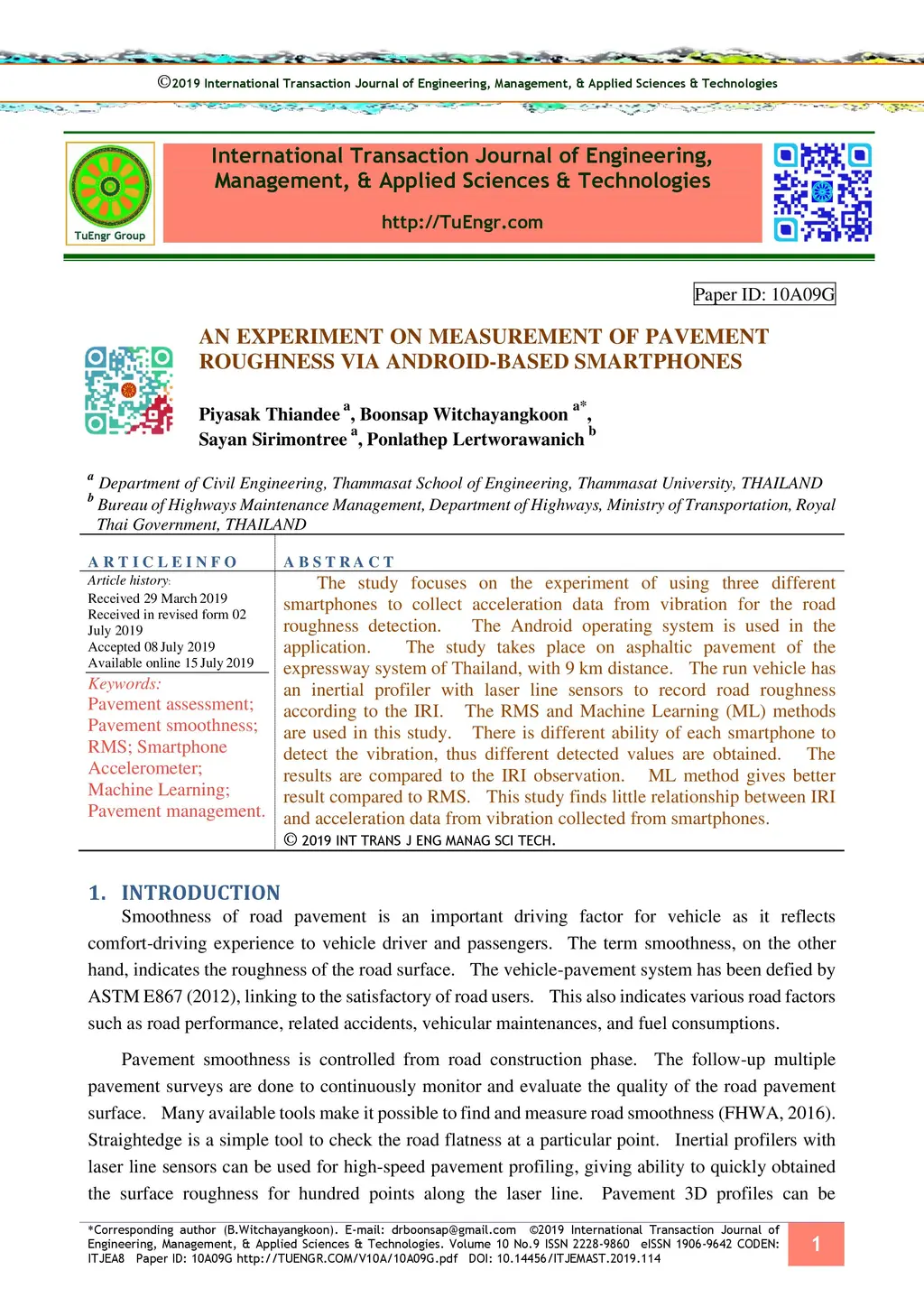An Experiment on Measurement of Pavement Roughness via Android-Based