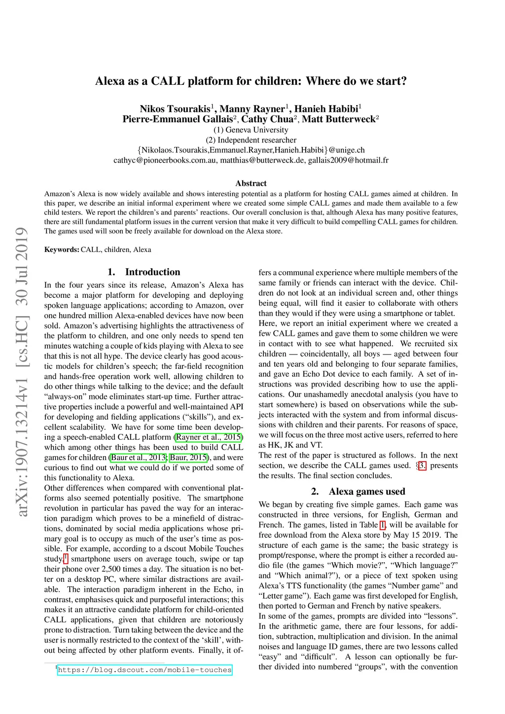 Amazon's Alexa is now widely available and shows interesting potential as a platform for hosting CALL games aimed at children. In this paper, we describe an initial informal experiment where we created some simple CALL games and made them available to a few child testers. We report the children's and parents' reactions. Our overall conclusion is that, although Alexa has many positive features, there are still fundamental platform issues in the current version that make it very difficult to build compelling CALL games for children. The games used will soon be freely available for download on the Alexa store.