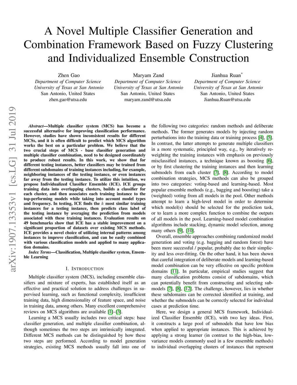 A Novel Multiple Classifier Generation and Combination Framework Based