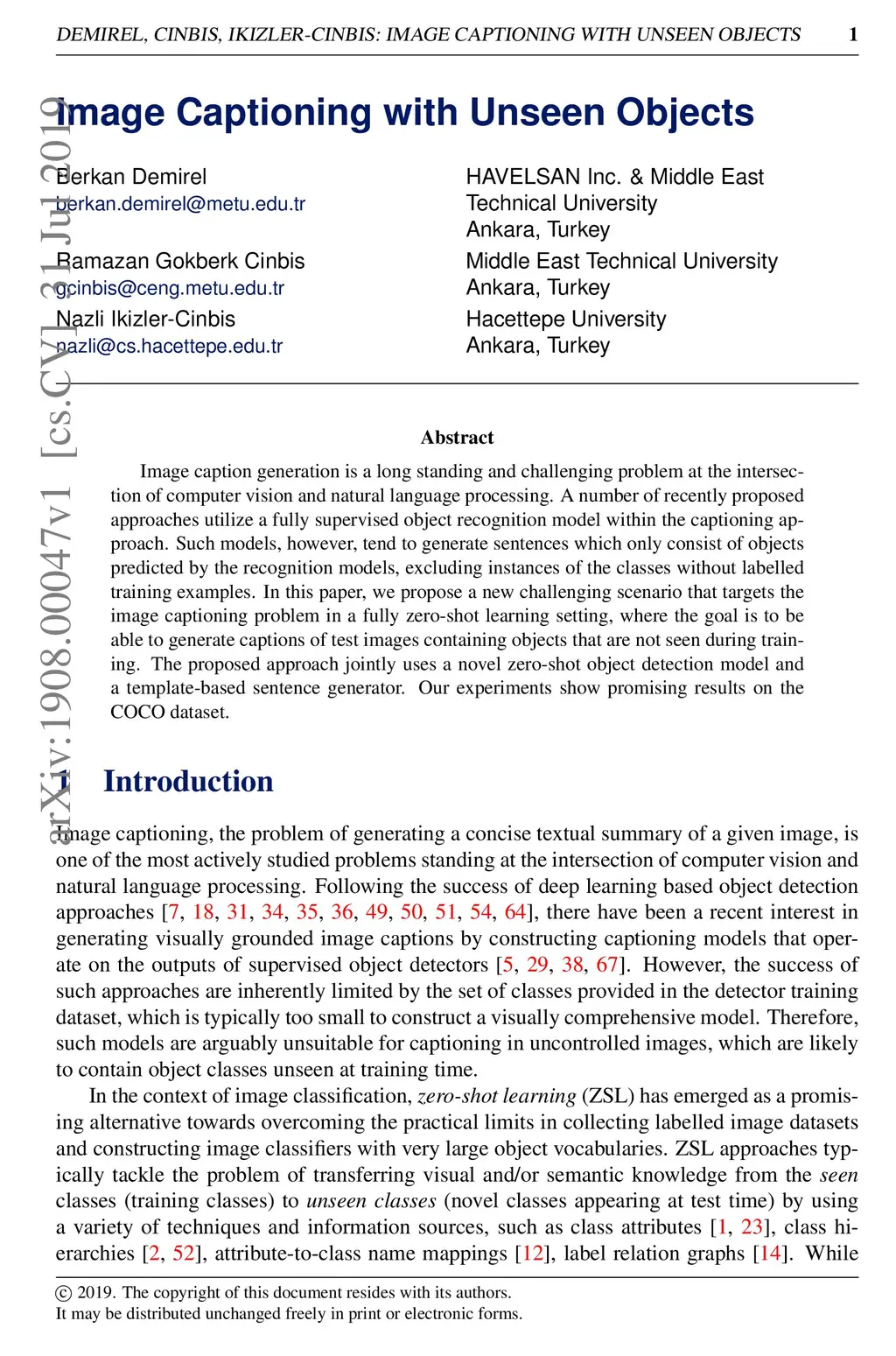 Image Captioning with Unseen Objects