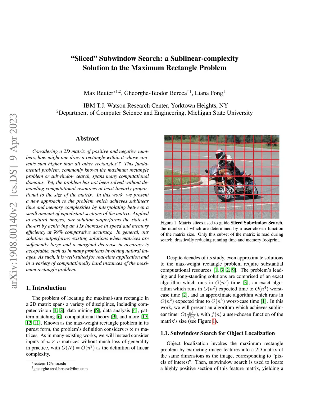 "Sliced" Subwindow Search: a Sublinear-complexity Solution to the