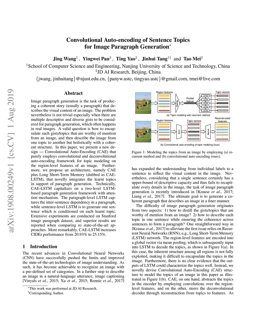 Convolutional Auto-encoding of Sentence Topics for Image Paragraph