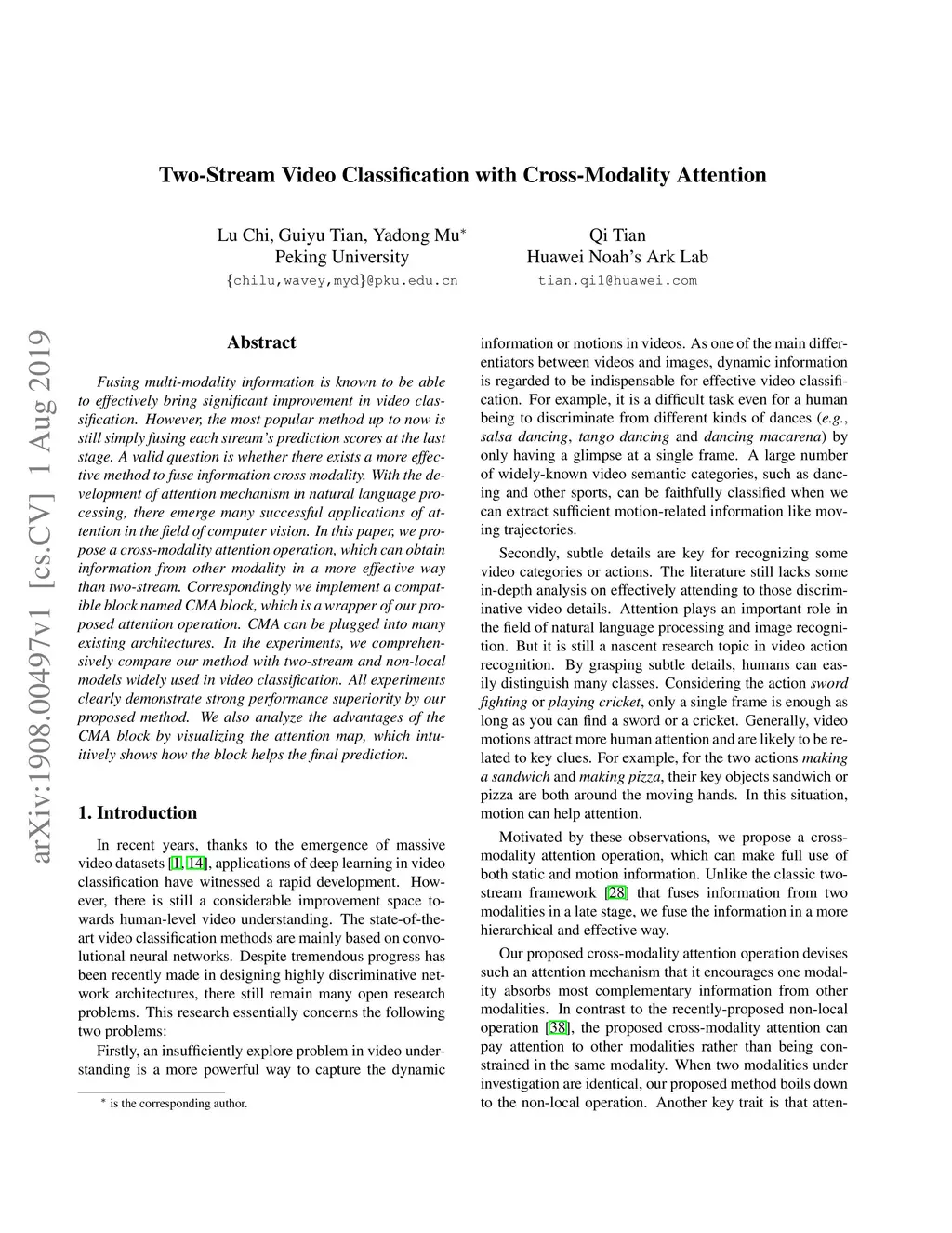 Two-Stream Video Classification with Cross-Modality Attention