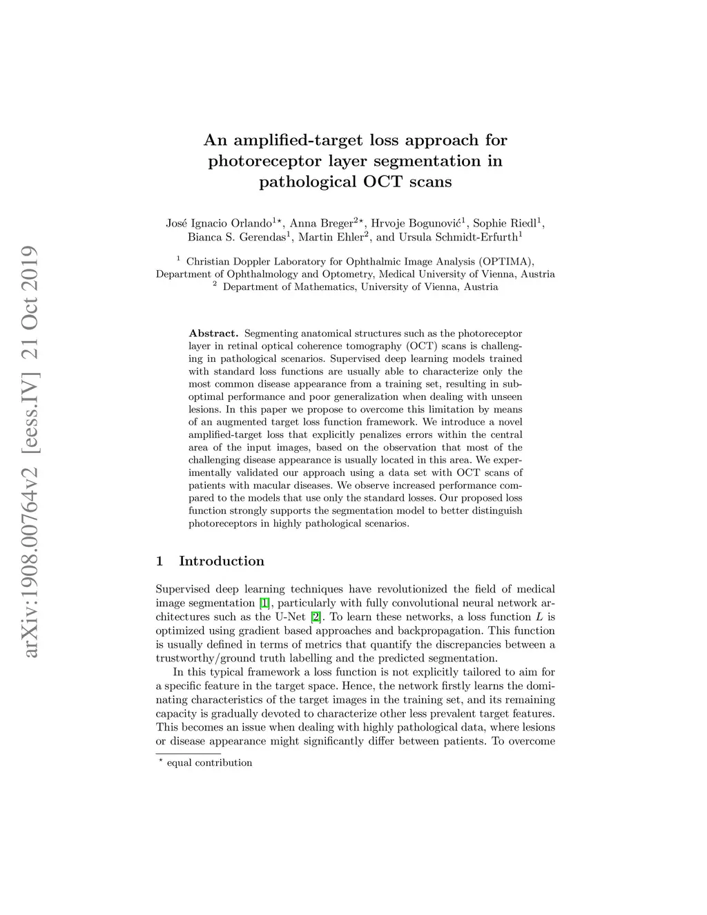 An amplified-target loss approach for photoreceptor layer segmentation