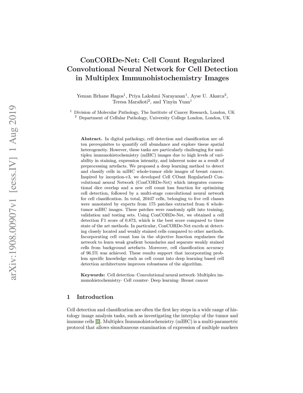 ConCORDe-Net: Cell Count Regularized Convolutional Neural Network for